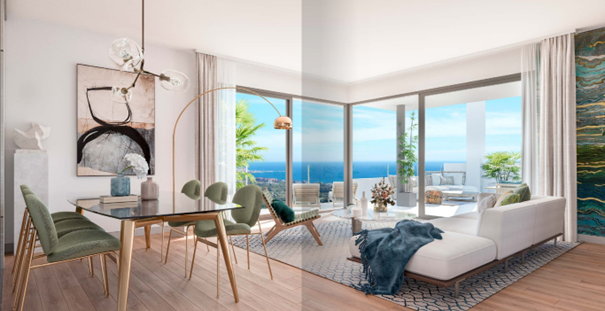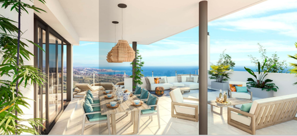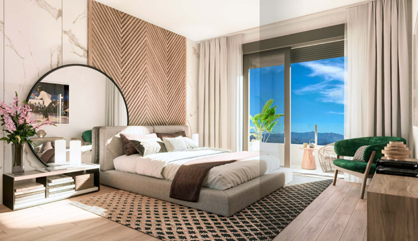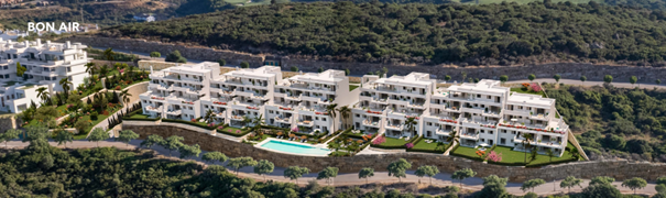 Gelegen op een ideale locatie voor zon- en golfliefhebbers, biedt BON AIR ruime, open architectuur die de hele dag door Andalusische zon binnenlaat. De koele kamers in de zomer en de grote terrassen zijn perfect om te genieten van het prachtige landschap en het buitenleven. De appartementen en penthouses zijn ontworpen om optimaal gebruik te maken van licht en ruimte, met een open indeling van woonkamer, keuken en terras, en bieden een schitterend uitzicht op de baai van Estepona en Sierra Bermeja.