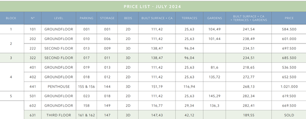 Met vloeroppervlakken tot 151,19 m², individuele tuinen tot 210,25 m² en terrassen tot 168,36 m², bieden deze woningen alle ruimte die je nodig hebt. De zwembaden voor volwassenen en kinderen maken gebruik van zoutchlorering, wat zorgt voor een aangename zwemervaring. Elk appartement beschikt over een eigen garageplaats en opslagruimte. Daarnaast zijn er uitgebreide voorzieningen zoals een volledig uitgeruste fitnessruimte, een spa, kleedruimtes met douches, toiletten, opslagruimte en een co-working/co-living ruimte.