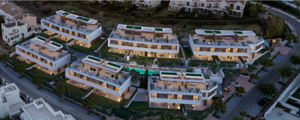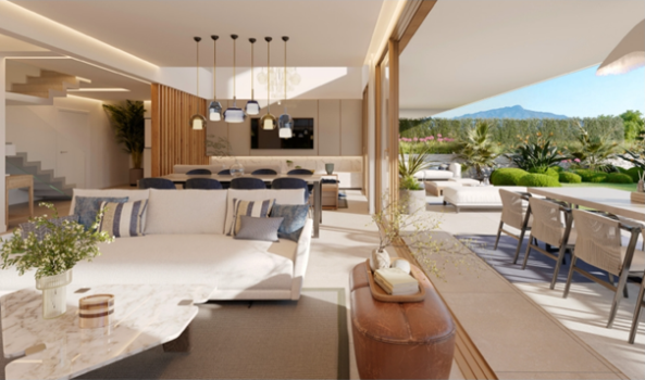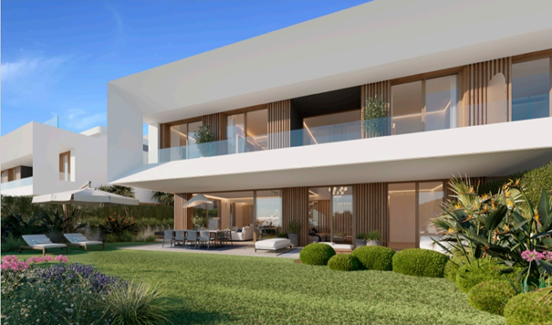 Lyra Residences is een exclusief wooncomplex met 15 moderne en luxe woningen, gelegen in het serene El Campanario-gebied, tussen Marbella en Estepona. Elk huis in Lyra Residences biedt ondergrondse parkeergelegenheid voor twee auto’s, privétuinen, ruime terrassen en ongelooflijke solariums. Met inbegrip van kelders zijn deze woningen perfect voor zowel gezinsleven als entertainment. De begane grond heeft een open indeling met eigentijdse keukens naadloos geïntegreerd met eet- en woonruimtes. Grote raampartijen verbinden binnen met buiten, waardoor natuurlijk licht de woning overstromen. Geniet van het weer aan de Costa del Sol en ontspan op de adembenemende uitzichten vanaf de dakterrassen. Of je nu in de zon ligt of geniet van een betoverende zonsondergang, deze ruimtes zijn ontworpen voor ultieme ontspanning. Laat je onderdompelen in de weelderige gemeenschappelijke voorzieningen die dit prachtige project te bieden heeft. Blijf fit en verjongd in de volledig uitgeruste fitnessruimte en spa, of neem een verfrissende duik in het buitenzwembad terwijl je geniet van panoramisch uitzicht. Gelegen tussen de gerenommeerde golfbanen El Paraiso en El Campanario, is dit rustige woongebied voornamelijk versierd met elegante villa’s en luxe appartementen, omgeven door weelderige tuinen en aangename vergezichten. De charmante golfbaan, compleet met clubhuis en restaurant, heeft een speciale plek in de gemeenschap en dient als een populaire ontmoetingsplaats voor bewoners. Daarnaast zijn er in de omgeving handige diensten en winkelfaciliteiten beschikbaar. Ontdek het summum van luxe wonen bij Lyra Residences, waar moderne elegantie samengaat met rust in het hart van de Costa del Sol. Als je geïnteresseerd bent, maak dan snel een afspraak om dit huis te bezichtigen!
