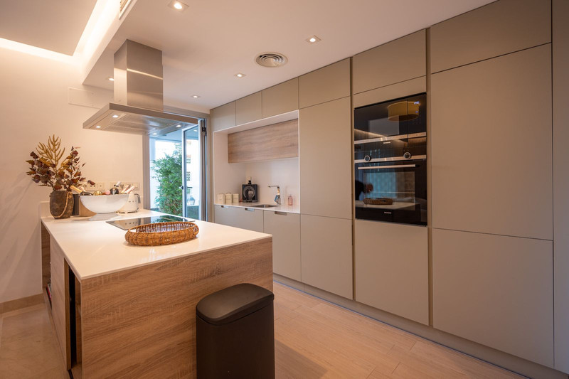 De open woon- en keukenruimte is een uitnodigende plek om te ontspannen en te genieten van het mediterrane leven. De uitgestrekte terrassen bieden een panoramisch uitzicht op de omgeving en laten het zonlicht overvloedig binnenstromen. Een bijkeuken voegt praktische functionaliteit toe aan deze stijlvolle leefruimte.
