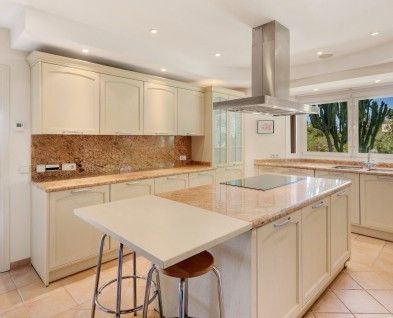 Handige voorzieningen zoals een garage voor twee auto’s, airconditioning, vloerverwarming door het hele huis, open haard en meerdere terrassen verhogen het comfort en gemak van deze opmerkelijke woning.