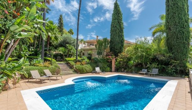 Deze traditionele Andalusische woning, ontworpen door architect Javier Pascual Banus, maakt optimaal gebruik van zijn zuidgerichte positie op een verhoogd perceel. Dit biedt zowel privacy als adembenemende uitzichten. De talrijke ruime veranda’s, zowel open als half overdekt, zorgen ervoor dat u het hele jaar door kunt genieten van het klimaat van Marbella.